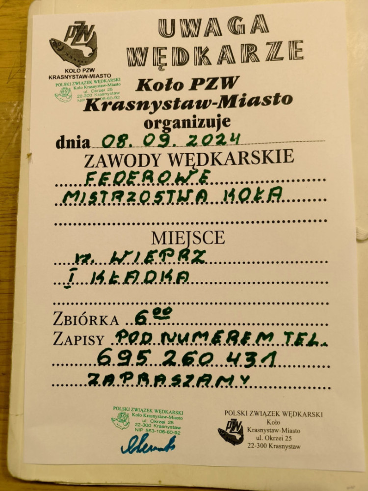 Zawody spławikowe „Jesień 2023”