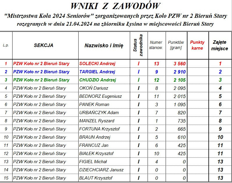 Zawody Wędkarskie w Kategorii SENIOR -MISTRZOSTWA KOŁA - SPŁAWIK